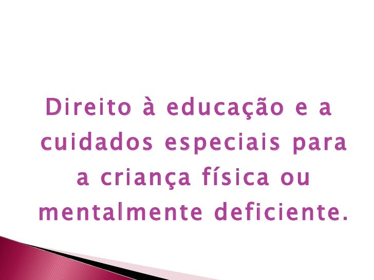 9. 15. <ul><li>Direito à educação e a cuidados especiais para a criança física ou mentalmente deficiente. </li></ul>