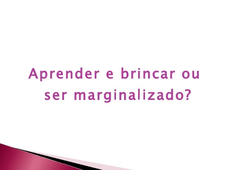 13. 23. <ul><li>Aprender e brincar ou ser marginalizado? </li></ul>