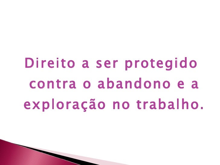 16. 29. <ul><li>Direito a ser protegido contra o abandono e a exploração no trabalho. </li></ul>
