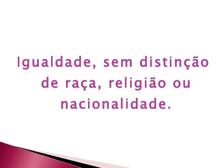 3. 3. <ul><li>Igualdade, sem distinção de raça, religião ou nacionalidade. </li></ul>
