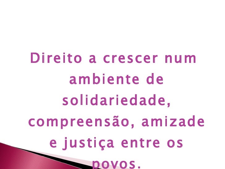 18. 33. <ul><li>Direito a crescer num ambiente de solidariedade, compreensão, amizade e justiça entre os povos. </li></ul>