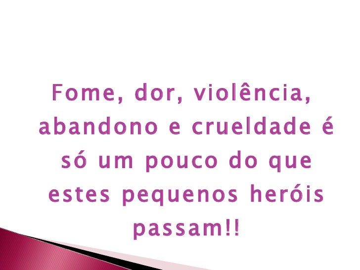 22. 39. <ul><li>Fome, dor, violência, abandono e crueldade é só um pouco do que estes pequenos heróis passam!! </li></ul>