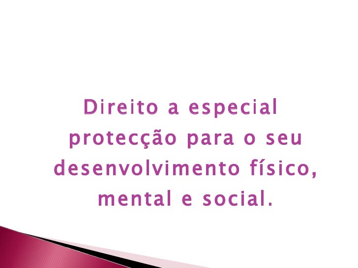 4. 5. <ul><li>Direito a especial protecção para o seu desenvolvimento físico, mental e social. </li></ul>