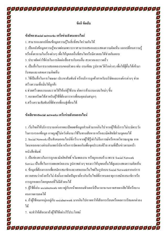 ข้อดีของSocial networks เครือข่ายสังคมออนไลน์