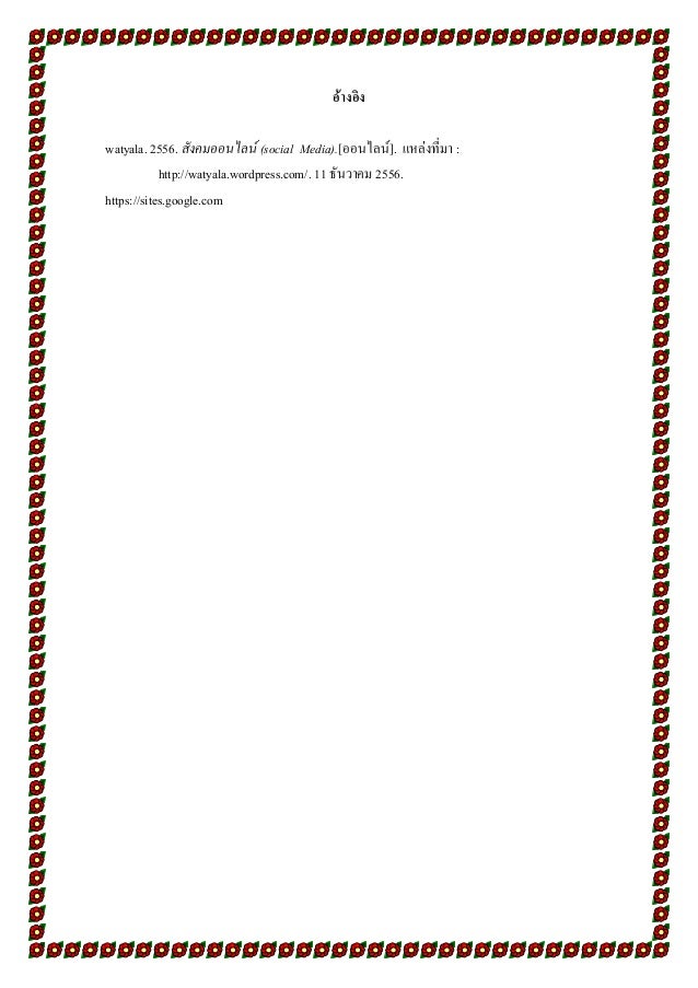 17. 17. อ้างอิง watyala. 2556. สังคมออนไลน์ (social Media).[ออนไลน์]. แหล่งที่มา : http://watyala.wordpress.com/. 11 ธันวาคม 2556. https://sites.google.com