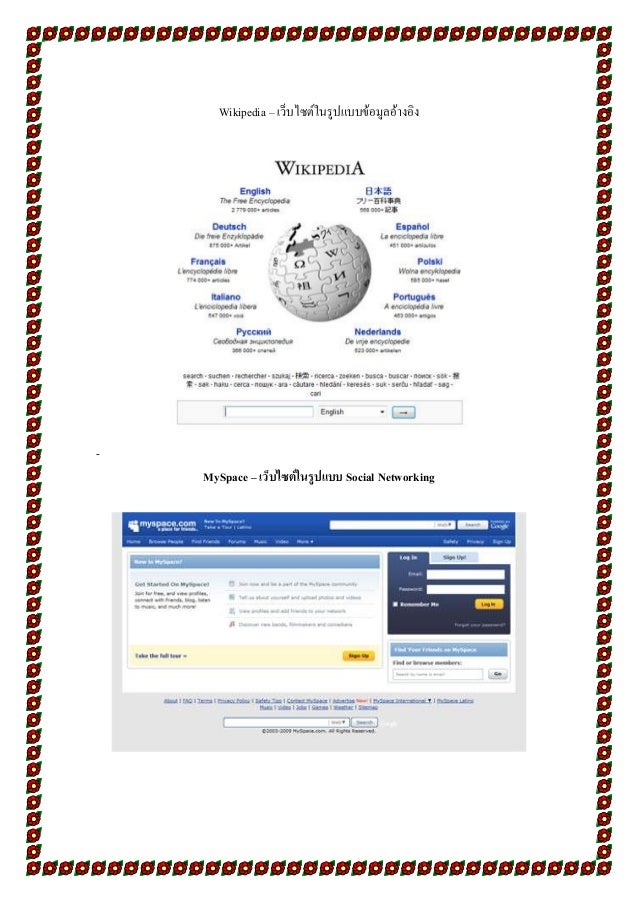 5. 5. Wikipedia – เว็บไซต์ในรูปแบบข้อมูลอ้างอิง MySpace – เว็บไซต์ในรูปแบบ Social Networking
