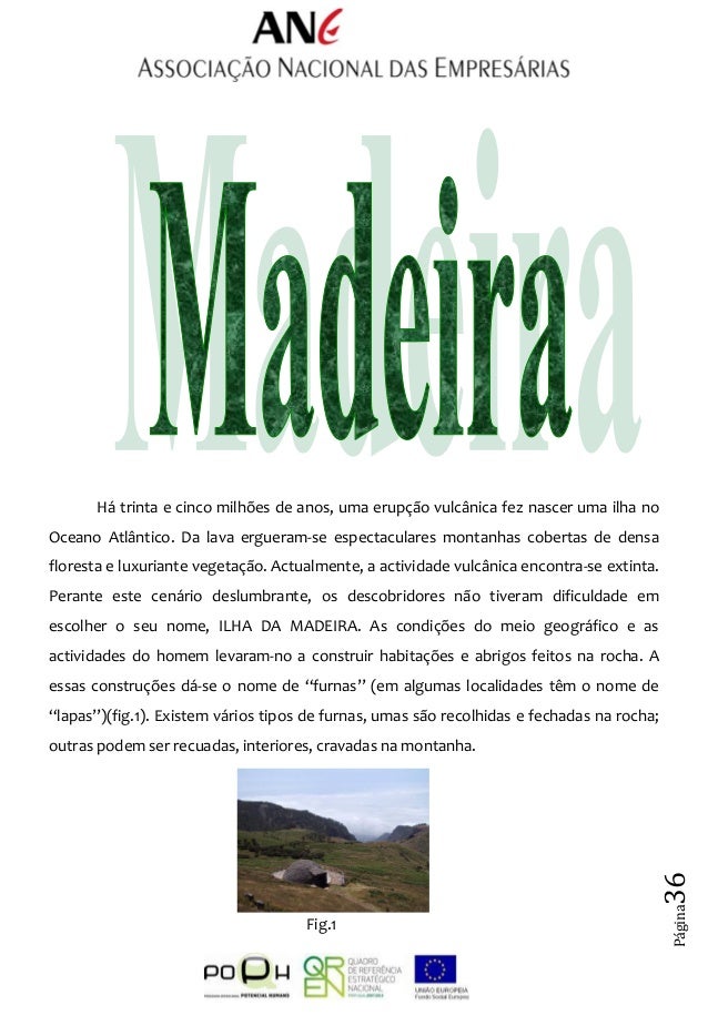 36. 36. Página36 Há trinta e cinco milhões de anos, uma erupção vulcânica fez nascer uma ilha no Oceano Atlântico. Da lava ergueram-se espectaculares montanhas cobertas de densa floresta e luxuriante vegetação. Actualmente, a actividade vulcânica encontra-se extinta. Perante este cenário deslumbrante, os descobridores não tiveram dificuldade em escolher o seu nome, ILHA DA MADEIRA. As condições do meio geográfico e as actividades do homem levaram-no a construir habitações e abrigos feitos na rocha. A essas construções dá-se o nome de “furnas” (em algumas localidades têm o nome de “lapas”)(fig.1). Existem vários tipos de furnas, umas são recolhidas e fechadas na rocha; outras podem ser recuadas, interiores, cravadas na montanha. Fig.1