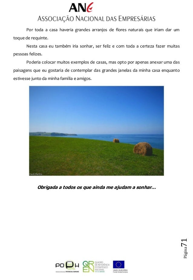 71. 71. Página71 Por toda a casa haveria grandes arranjos de flores naturais que iriam dar um toque de requinte. Nesta casa eu também iria sonhar, ser feliz e com toda a certeza fazer muitas pessoas felizes. Poderia colocar muitos exemplos de casas, mas opto por apenas anexar uma das paisagens que eu gostaria de contemplar das grandes janelas da minha casa enquanto estivesse junto da minha família e amigos. Obrigada a todos os que ainda me ajudam a sonhar…