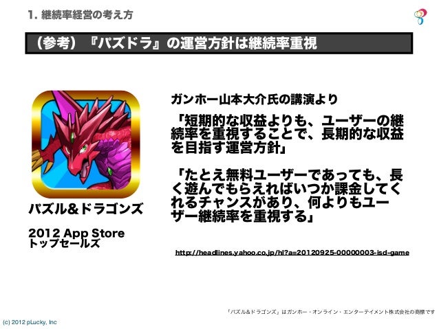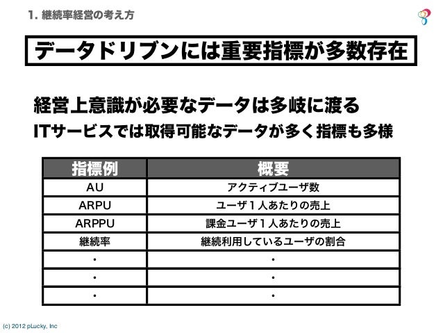 1. 1. 継続率経営におけるKPI分析 株式会社pLucky 2012-12-18(c) 2012 pLucky, Inc
