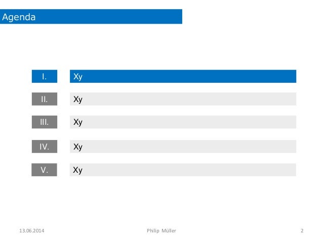 2. 2. Agenda 13.06.2014 Philip Müller 2 XyI. XyIII. XyIV. XyII. XyV.