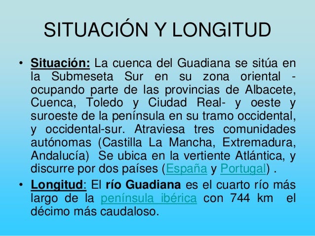 SITUACIÓN Y LONGITUD• Situación: La cuenca del Guadiana se sitúa enla Submeseta Sur en su zona oriental -ocupando parte de...