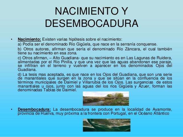 NACIMIENTO YDESEMBOCADURA• Nacimiento: Existen varias hipótesis sobre el nacimiento:a) Podía ser el denominado Río Gigüela...