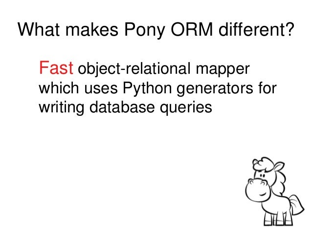 2. 2. What makes Pony ORM different? Fast object-relational mapper which uses Python generators for writing database queries