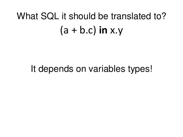 33. 33. It depends on variables types! What SQL it should be translated to? (a + b.c) in x.y