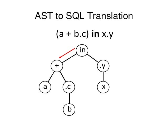 39. 39. (a + b.c) in x.y AST to SQL Translation in .y x + a .c b