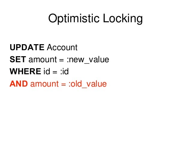 81. 81. UPDATE Account SET amount = :new_value WHERE id = :id AND amount = :old_value Optimistic Locking