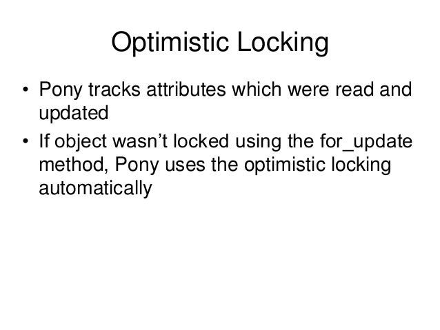 82. 82. Optimistic Locking • Pony tracks attributes which were read and updated • If object wasn’t locked using the for_update method, Pony uses the optimistic locking automatically