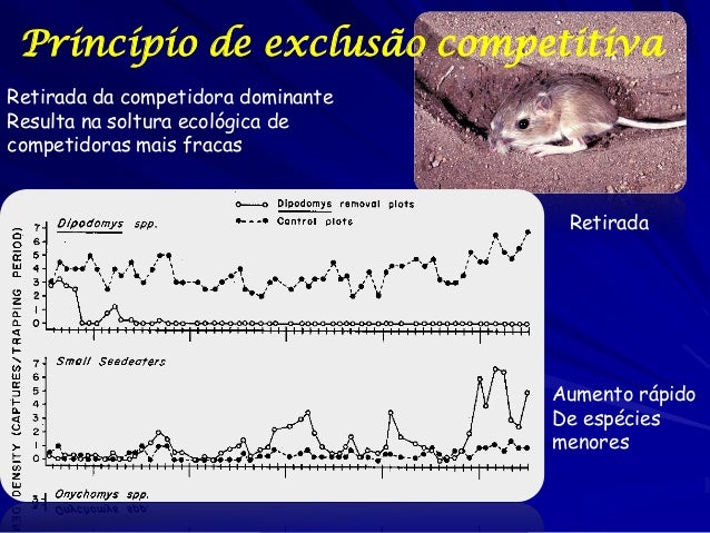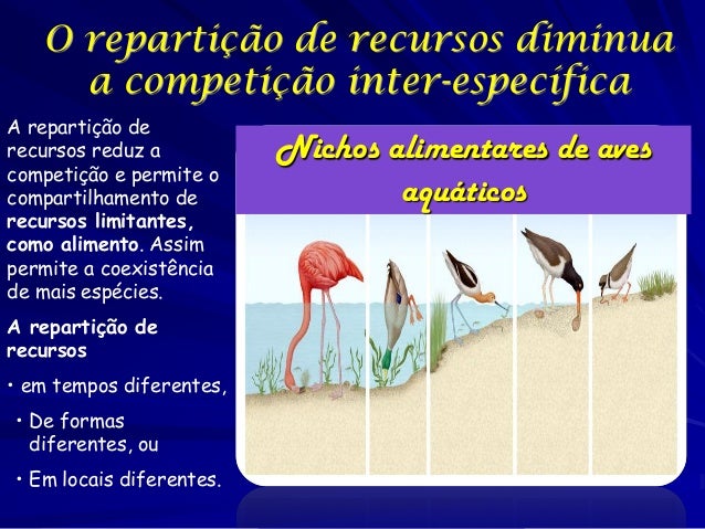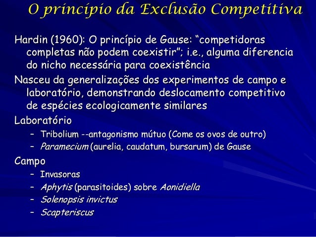 65. 65. Coexistência competitiva porvia da diferenciação do nichoMoluscos de ConnellCoexistência de Panicum e Glycine na Austrália quando Glycine contem Rhizobium como fonte de nitrogênioEspécies de plantas invasoras (seleção r)Aranhas orbiculares baseadas em diferencias sutis da teiaBicos dos tentilhões de Darwin