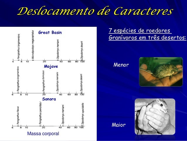 35. 35. Deslocamento de Caracteres Great Basin 7 espécies de roedores Granívoros em três desertos: Mojave Menor Sonora Maior Massa corporal (log)