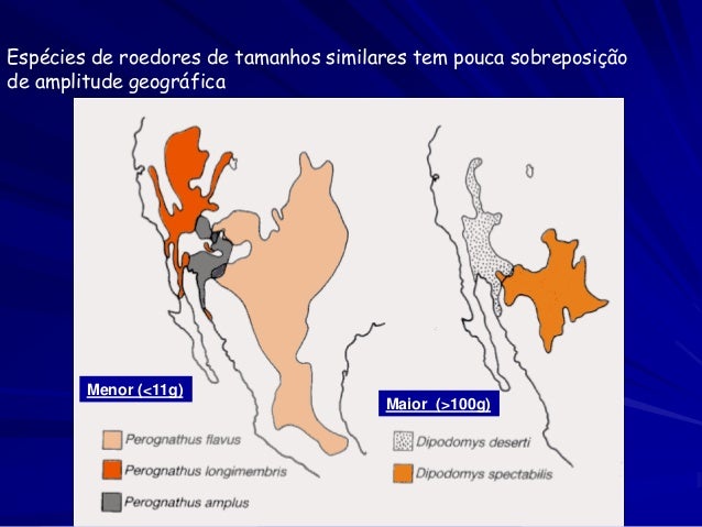 36. 36. Espécies de roedores de tamanhos similares tem pouca sobreposiçãode amplitude geográfica Menor (<11g) Maior (>100g)