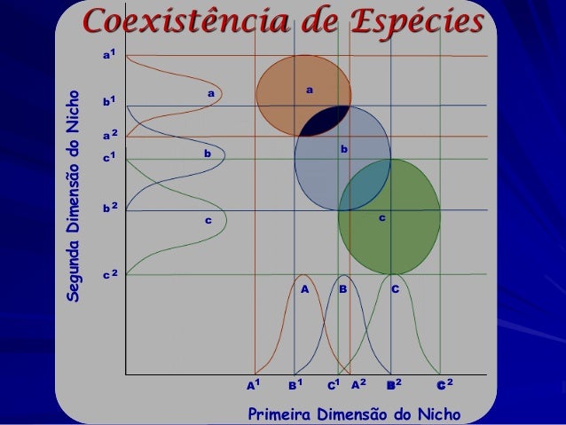 58. 58. Coexistência de Espécies a1 a aSegunda Dimensão do Nicho b1 a2 b b c1 b2 c c c2 A B C A1 B1 C1 A 2 B2 C2 Primeira Dimensão do Nicho
