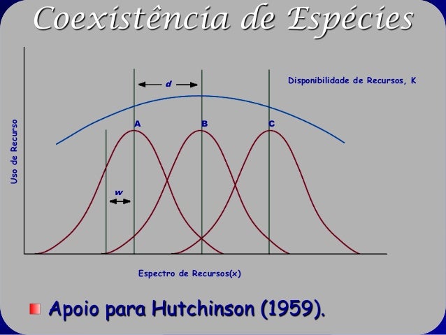 60. 60. Coexistência de Espécies d Disponibilidade de Recursos, K A B CUso de Recurso w Espectro de Recursos(x) Apoio para Hutchinson (1959).