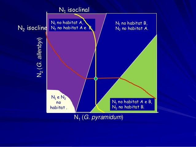 79. 79. N1 isoclinal N1 no habitat A, N1 no habitat B,N2 isocline N2 no habitat A e B. N2 no habitat A. N2 (G. allenbyi) N1 e N 2 no N1 no habitat A e B, habitat . N2 no habitat B. N1 (G. pyramidum)