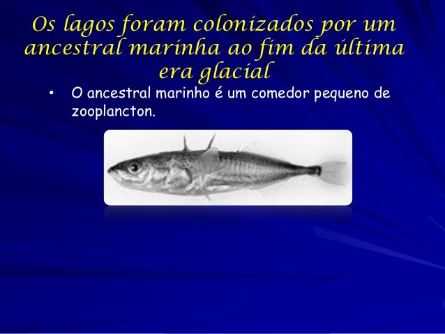 84. 84. Os lagos foram colonizados por umancestral marinha ao fim da última era glacial • O ancestral marinho é um comedor pequeno de zooplancton.