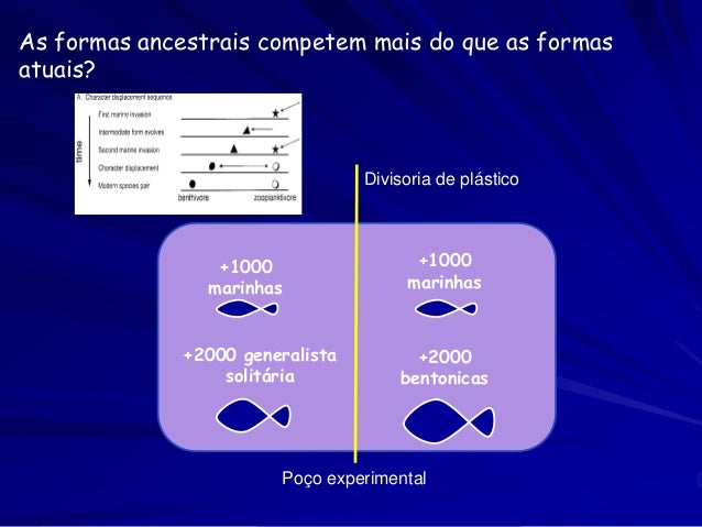 90. 90. As formas ancestrais competem mais do que as formasatuais? Divisoria de plástico +1000 +1000 marinhas marinhas +2000 generalista +2000 solitária bentonicas Poço experimental