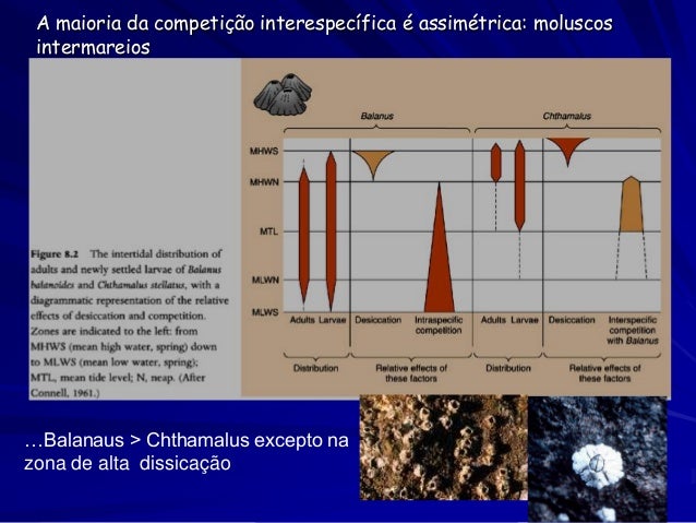 96. 96. A maioria da competição interespecífica é assimétrica: moluscos intermareios…Balanaus > Chthamalus excepto nazona de alta dissicação