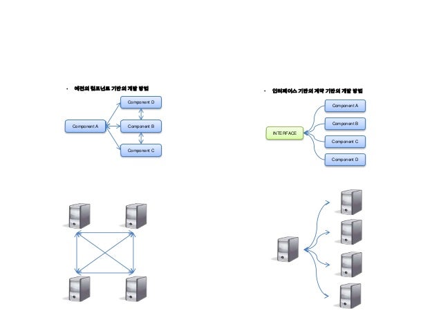 12. 12. Component A Component B Component D Component C Component A Component B Component D Component C INTERFACE • 예전의 컴포넌트 기반의 개발 방법 • 인터페이스 기반의 계약 기반의 개발 방법