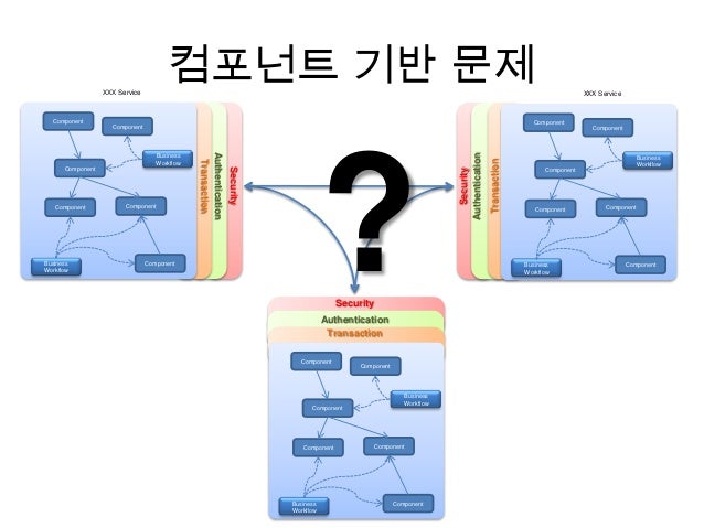 6. 6. XXX Service Security Authentication Transaction Component Component Component Component Component Component Business Workflow Business Workflow XXX Service Security Authentication Transaction Component Component Component Component Component Component Business Workflow Business Workflow XXX Service Security Authentication Transaction Component Component Component Component Component Component Business Workflow Business Workflow 컴포넌트 기반 문제 ?