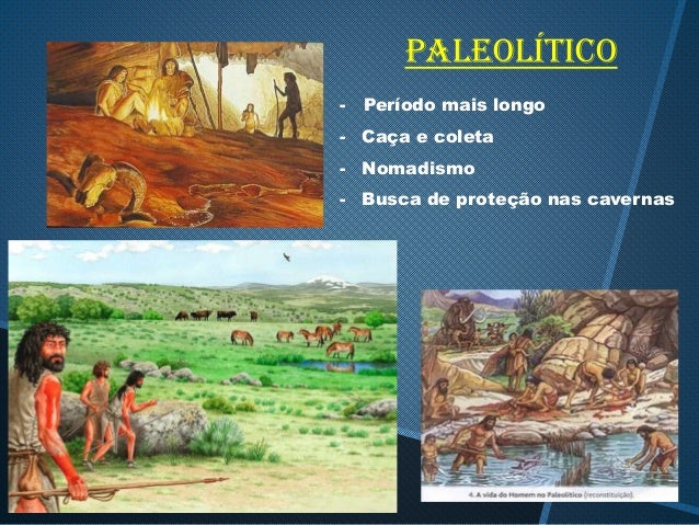 2. 2. Paleolítico - Período mais longo - Caça e coleta - Nomadismo - Busca de proteção nas cavernas