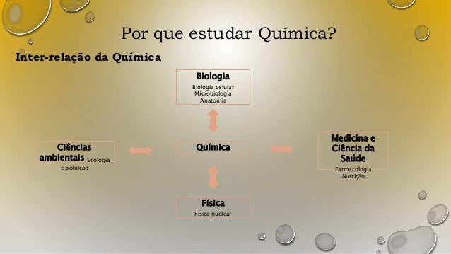 3. 3. Por que estudar Química? Inter-relação da Química Ciências ambientais Ecologia e poluição Biologia Biologia celular Microbiologia Anatomia Química Medicina e Ciência da Saúde Farmacologia Nutrição Física Física nuclear