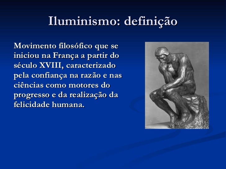 3. 3. Iluminismo: definição <ul><li>Movimento filosófico que se iniciou na França a partir do século XVIII, caracterizado pela confiança na razão e nas ciências como motores do progresso e da realização da felicidade humana. </li></ul>