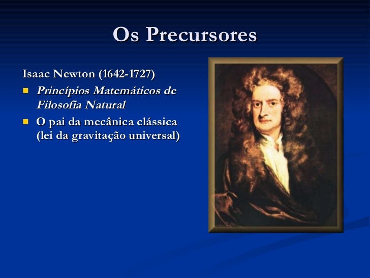9. 9. Os Precursores <ul><li>Isaac Newton (1642-1727) </li></ul><ul><li>Princípios Matemáticos de Filosofia Natural </li></ul><ul><li>O pai da mecânica clássica (lei da gravitação universal) </li></ul>