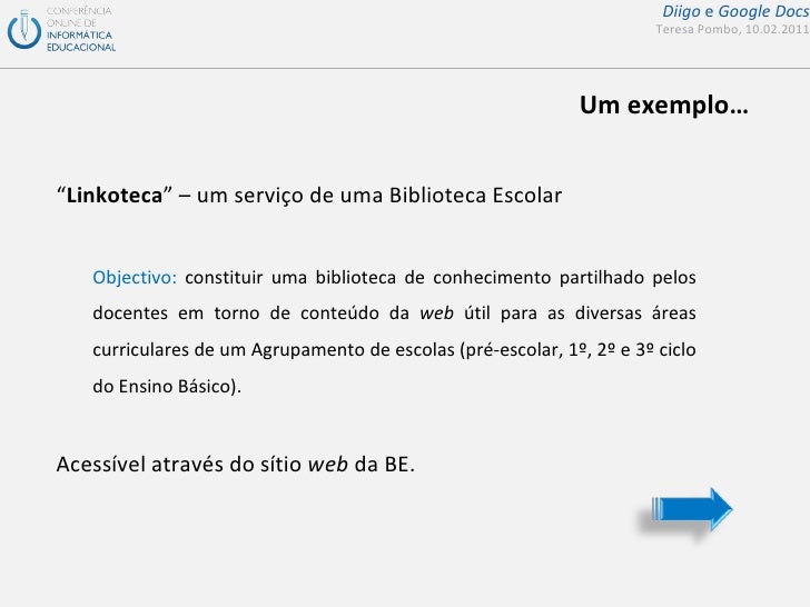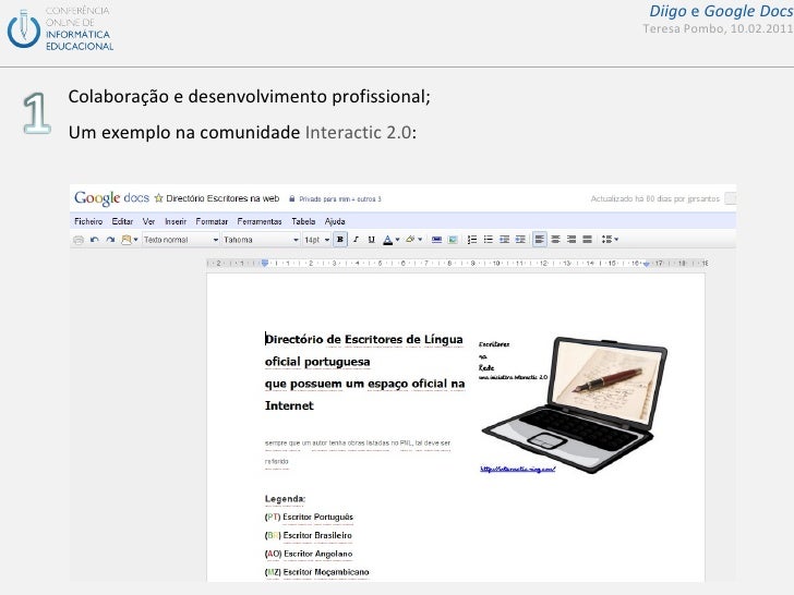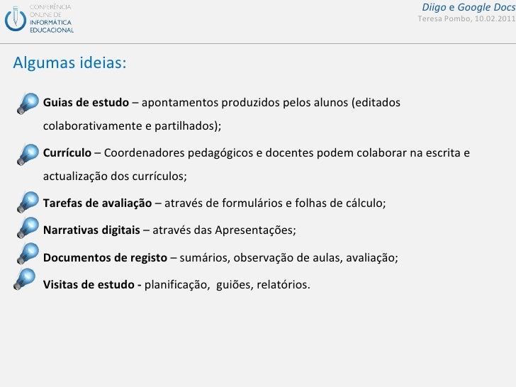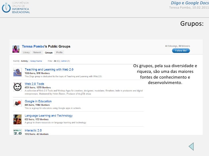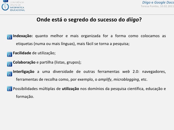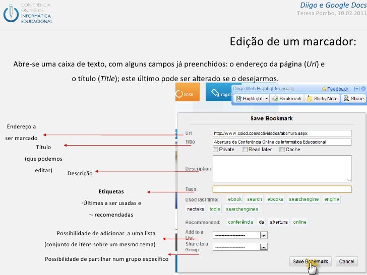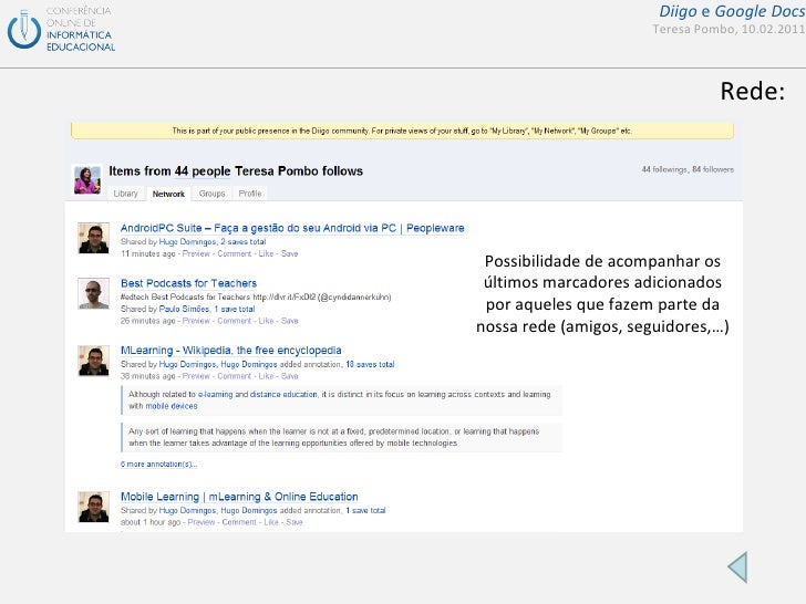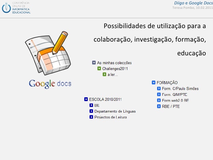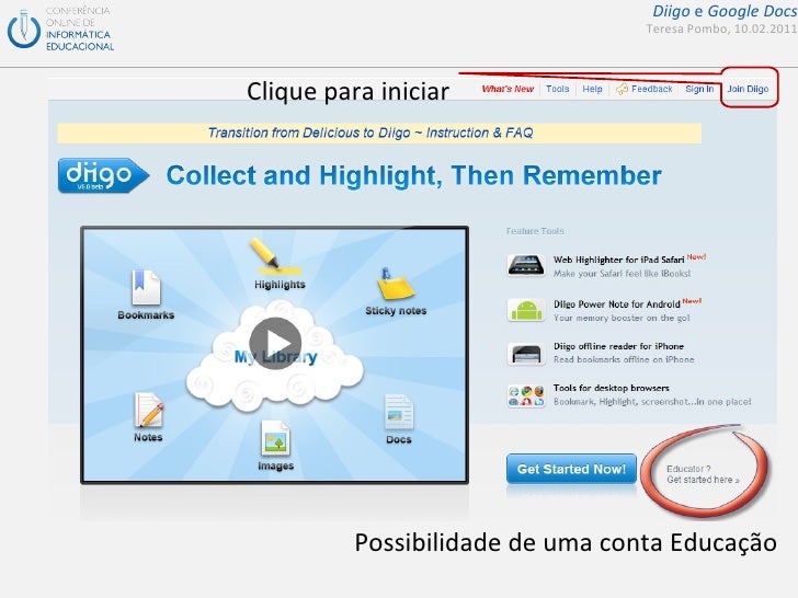 Apresentação de suporte ao seminário da COIED sobre diigo e google docs