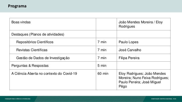 Apresentações da Reunião RCAAP Online