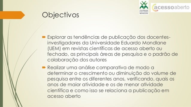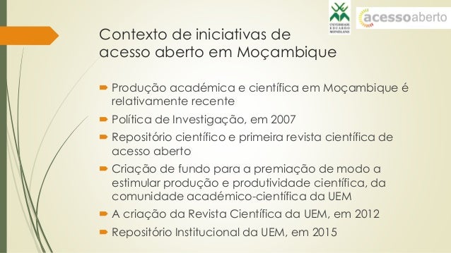 Publicação em acesso aberto na Universidade Eduardo Mondlane: um olhar sobre os artigos submetidos no âmbito do programa de incentivo à publicação científica
