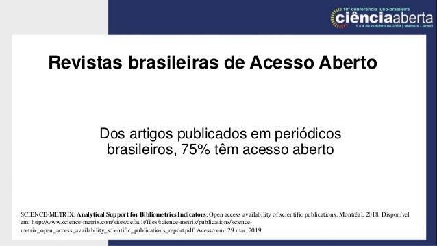 Revistas científicas brasileiras em acesso aberto de visibilidade internacional: estudo baseado no fator de impacto.