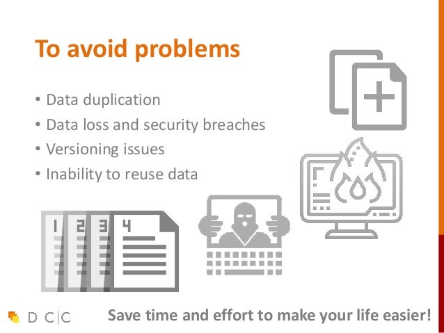10. 10. To avoid problems • Data duplication • Data loss and security breaches • Versioning issues • Inability to reuse data Save time and effort to make your life easier!