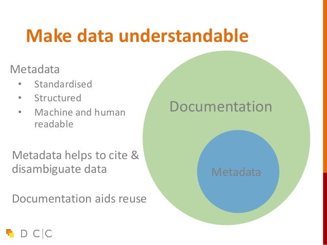 20. 20. Make data understandable Metadata • Standardised • Structured • Machine and human readable Metadata helps to cite & disambiguate data Documentation aids reuse Metadata Documentation