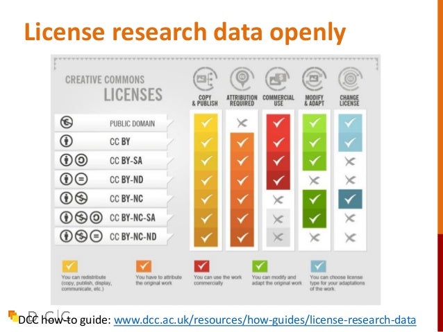 31. 31. DCC how-to guide: www.dcc.ac.uk/resources/how-guides/license-research-data License research data openly