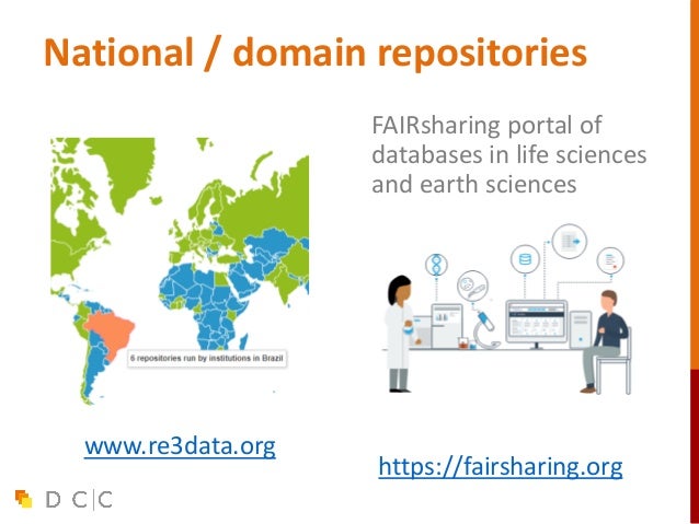 33. 33. National / domain repositories FAIRsharing portal of databases in life sciences and earth sciences www.re3data.org https://fairsharing.org
