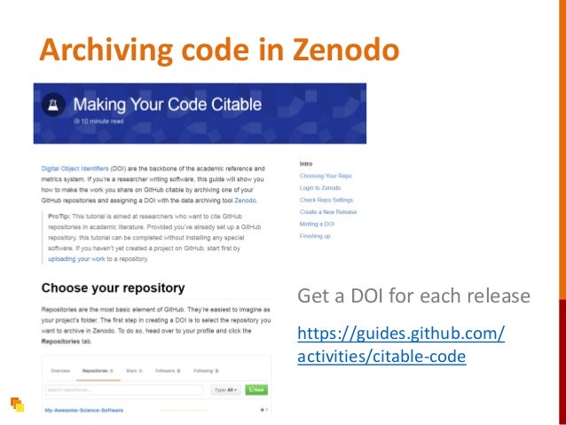 35. 35. Archiving code in Zenodo Get a DOI for each release https://guides.github.com/ activities/citable-code