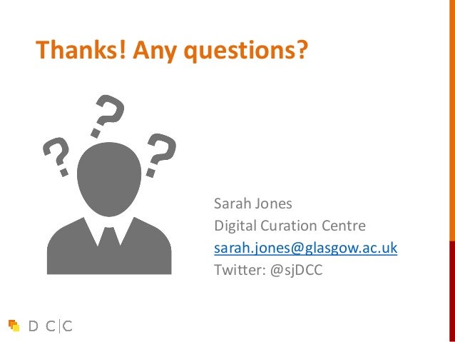 39. 39. Thanks! Any questions? Sarah Jones Digital Curation Centre sarah.jones@glasgow.ac.uk Twitter: @sjDCC