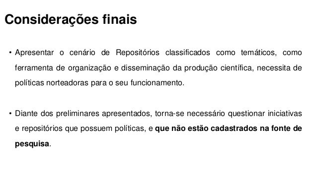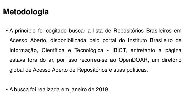Um cenário das políticas dos repositórios temáticos brasileiros