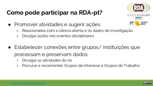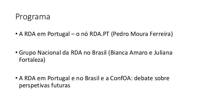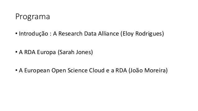 Workshop II - A Research Data Alliance: a organização mundial e as atividades em Portugal e no Brasil