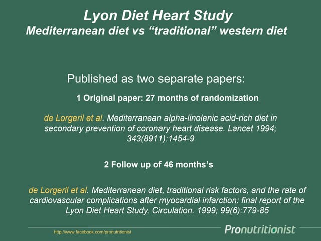 9. 9. Results (lipids and blood pressure) Results for only those patients who consumed ≤6,694 kJ/day (1,600 kcal/day) for women or ≤7,531 kJ/day (1,800 kcal/day) for men according to the last diet record at 24 months; 17 patients in the low-fat group and 18 patients in the low-carbohydrate group. Data are given for all participants who provided complete diet recordsaCompared with baselinebFor change over all time pointscFor change over all time points (between groups)dDenotes statistically significant difference between changes in the two groupseDenotes statistically significant difference between groups at baseline 9 Guldbrand H et al Diabetologia. 2012 May 6 www.pronutritionist.net