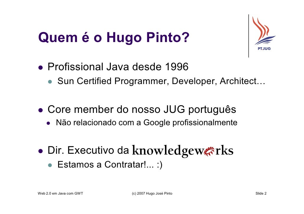 Apresentação de Hugo Pinto - 1º encontro PT.JUG.